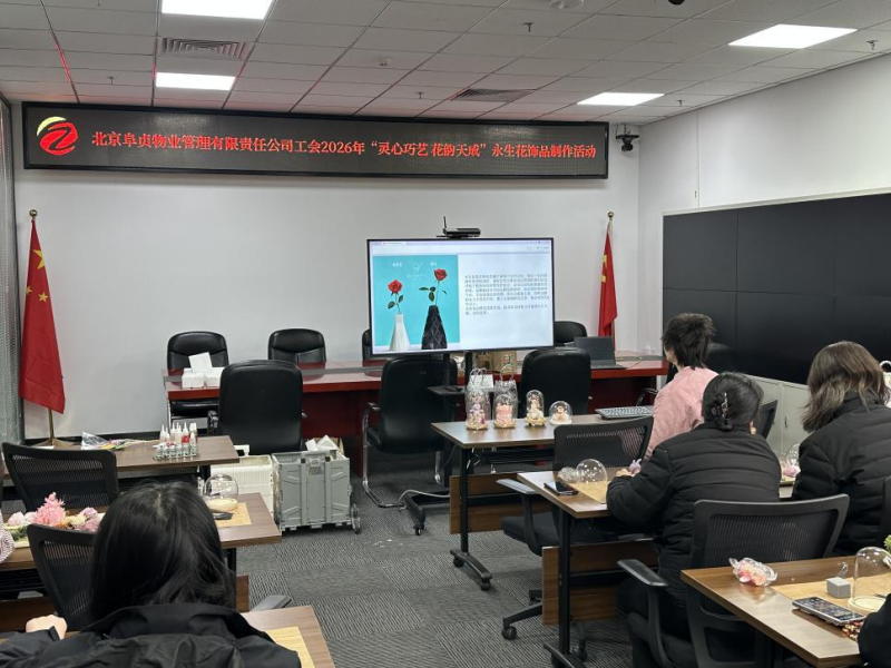在春意盎然的三月,为庆祝“三八”国际劳动妇女节,阜贞公司工会组织开展2026年三八妇女节“灵心巧艺 花韵天成”永生花饰品制作活动。该活动旨在丰富女职工的业余文化生活、增强企业凝聚力,并为女职工们营造一个温馨、浪漫的节日氛围。